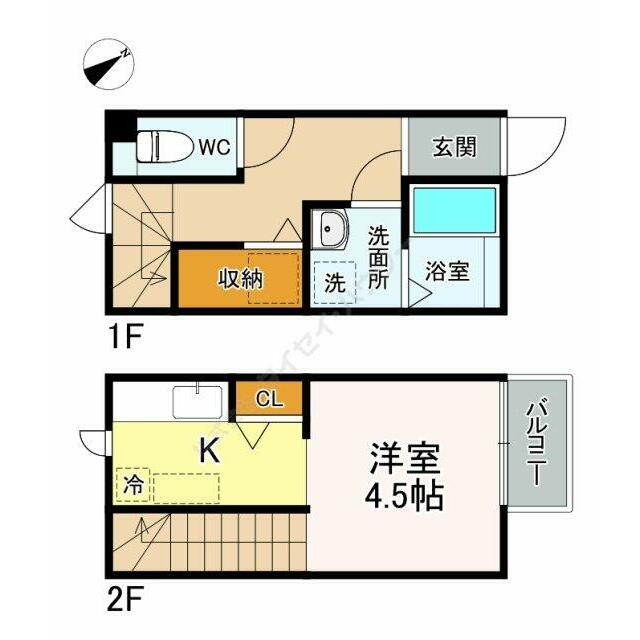 | 間取り | 1K(洋4.5) | 主要採光面 | 北西 |