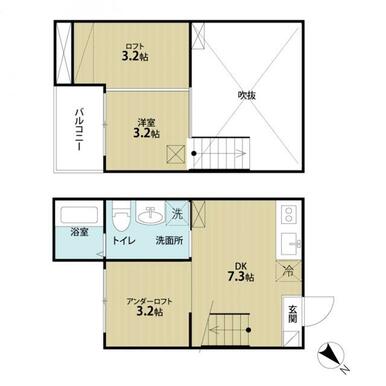 | 間取り | 1DK(DK7.3・洋室3.2) | 主要採光面 | 西 |